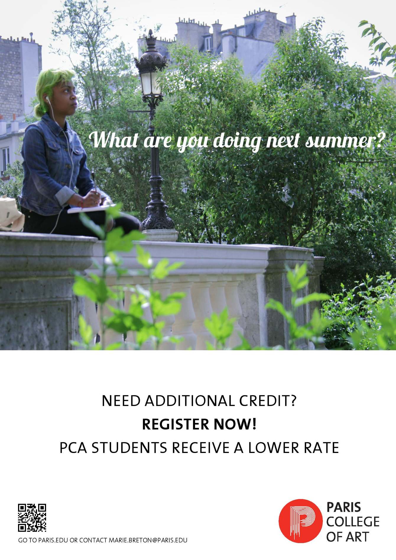 To display and register for. The Paris College of Art Summer Program offers an exciting set of courses with a modern. Register for a PCA summer program.