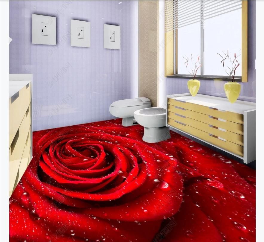 Customized 3d Self Adhesive Floor Photo Mural Wallpaper Romantic Love Red Rose Dewdrop Bedroom Bathroom 3d Floor Tiles From R15907037876 46 44 Dhgate Com